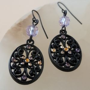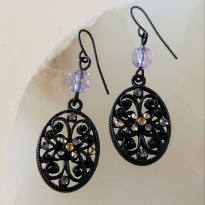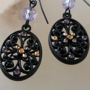 Black Floral Filigree Scrolls and Lilac Clear faceted Beads and Rhinestone