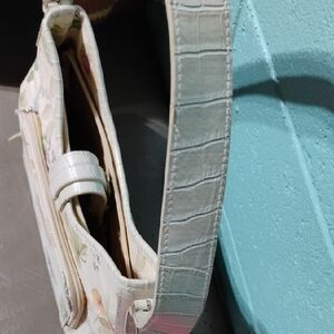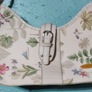 Chic vintage Longaberger bag with floral pattern w leather type bottom and strap. like new and spotless inside and outside. Ideal for a stylish look or a nice gift to give.