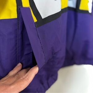 Members Only x Keith Haring anorak jacket in a black, yellow, and purple color scheme. It features all-over signature artwork by the late artist Keith Haring.