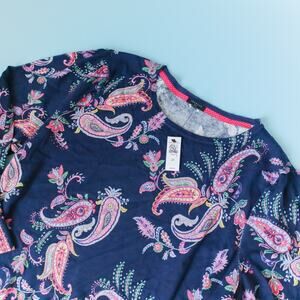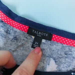 NEW Talbots Shadow Paisley Print Crewneck Sweater Size 2X Cotton Navy Blue