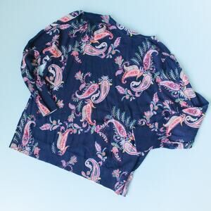 Features: Navy blue base cotton knit long sleeve paisley print pattern