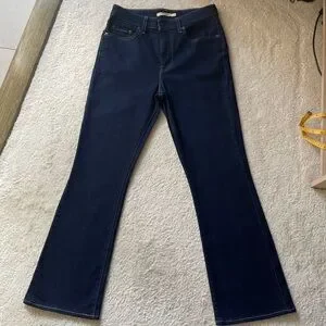 Selling new without tags, never worn Levi’s 725 high rise bootcut women’s jeans in size 29/28 (original 32” inseam altered to 28”). Zip-fly. Approximate measurements are 29” waist, 11” rise, 28 1/2” inseam. 80% cotton, 19% polyester, 1% elastane.