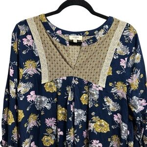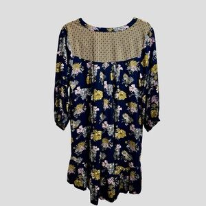 Umgee mixed fabric floral print tunic top/dress with ruffle hem Small