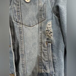 Ci Sono Light Blue Distressed Denim Jacket with hood Large EUC