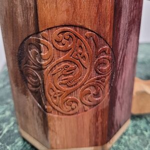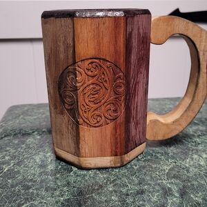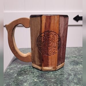 Handcrafted Wooden Mug with Carved Design