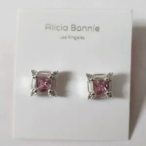 NWT Alicia Bonnie, "Enchanted Glow", Square Pink Stud Earrings