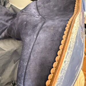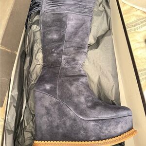 Paloma Barcelo Navy Wedge Boots with Fringe