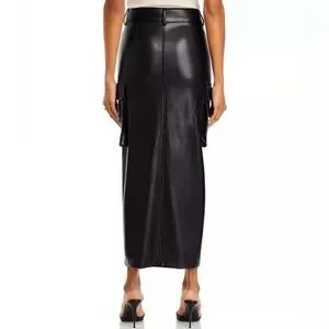 7 For All Mankind Faux Leather Cargo Midi Skirt With Slit Black Size Small