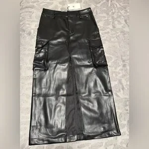 NWT! 7 For All Mankind faux leather cargo midi skirt in a women’s size small. Color is black and features a slit in the middle. Two cargo pockets, one on each side as well as slant pockets on each hip. Super soft faux leather.