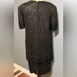 1980S LAURENCE KAZAR BLACK SILK SEQUIN DRESS size Large
