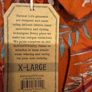 Midi dress with tired layers in orange tropical floral. Dress has button front with traditional collar and pockets in a relaxed fit. Size XL. New with tags. Original price $65.