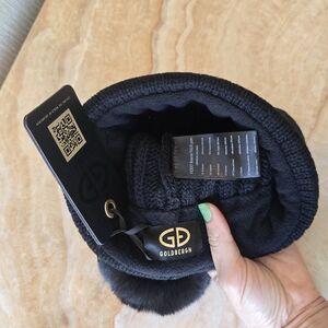 Goldbergh Hodd Faux Fur Beanie Black Cream White