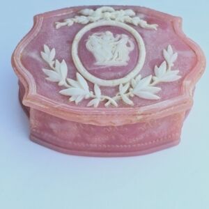 Pink Vintage Genuine Incolay Stone 3 Dancing Muses Hinged Jewelry Trinket Box