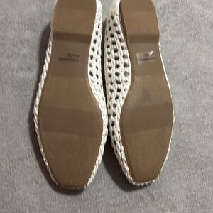 Experience effortless style with DV by Dolce Vita's cream flats, featuring a chic design for breathability and comfort. These versatile shoes are perfect for everyday wear, offering a classic look that complements any outfit. With their rounded toe and airy lattice-like pattern, they provide both elegance and practicality.