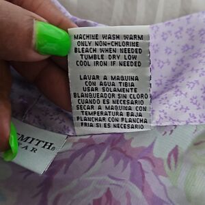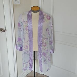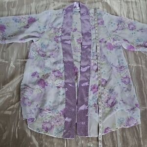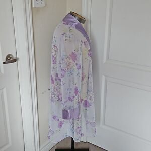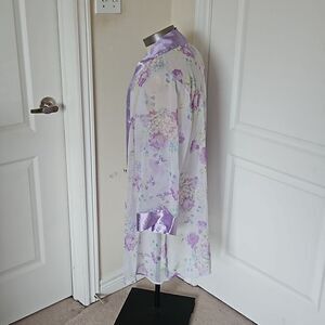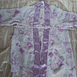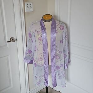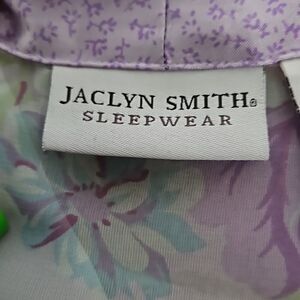 Jaclyn Smith Sleepwear Ladies Pullover Robe Size- Medium Color- Lavender/ Green Description Satin Trim Floral Pattern Long Sleeves Measurements armpit to armpit- 25" Sleeves Length- 21" Length- 34" Wore Once In Excellent Condition