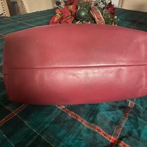 Stylish Coach shoulder bag in vibrant red leather. Features tassel accents and signature logo.