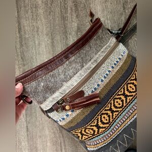 Myra Bag Cowhide Leather Western Hobo Cotton Adjustable Strap Crossbody Bag