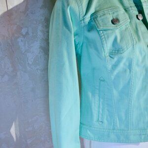 Talbots Women's SP Petite Teal Mint Green Denim Jean Jacket