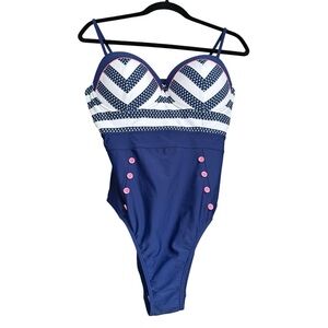 Retro VENUS Nautical One Piece Boosting Wire Support Swimsuit Size 14