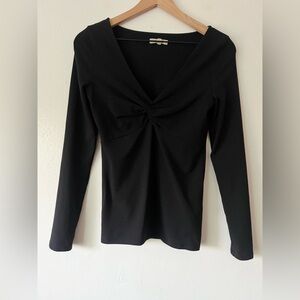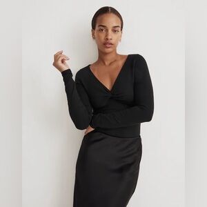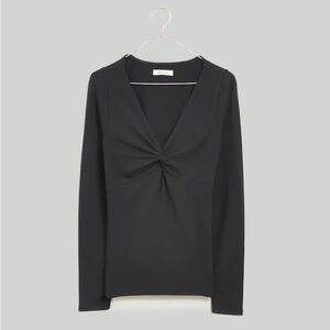 A soft and easy everyday piece. Crafted in fine cotton jersey, this fitted V-neck tee features a flattering twist-front detail that adds shape and interest. Designed to hit at the high hip or just below, making it perfect to tuck or wear as-is. Excellent preowned condition.