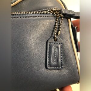 Coach Soft Cosmetic Bag Legacy Blue Leather Zip mini hangtag Excellent Condition