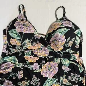 Freshwater Molded Cup Tankini Top Women's Size 2X Black & Floral Print