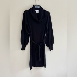 NWT Sam Edelman Knit Cowl Neck Long Sleeve Mini Dress with Tie Belt, Black, M
