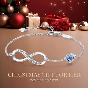 Sterling Silver Infinity Heart Charm Bracelet for Women Adjustable Gift