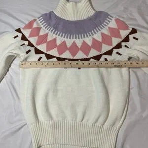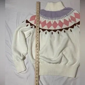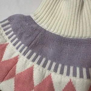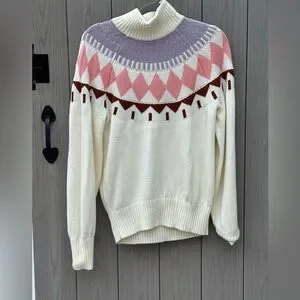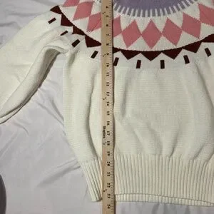 Free Assembly Cream Sweater with Pink and Purple Patterns- Cotton & Wool