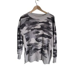Aerie Camo Oversized Crewneck Sweater Black Grey Casual Loungewear Size Small