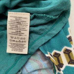 Free People Stella green multicolor fitted lined mock neck patterned dress. Zip back. Essential retro inspired style in a flattering stretch knit. Shades of blue and green on a seamed bodice with fitted long sleeves. Angular empire waist tops a figure skimming skirt. Exposed zipper. Smoke free home