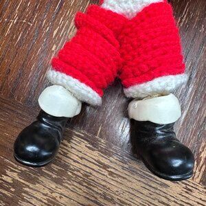 Vintage 60s/70s Santa Claus Crochet Doll Figure With Plastic Face & Boots