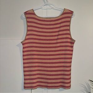 Chic tank top with red and cream stripes. Ideal for casual wear. Soft and comfortable fabric.