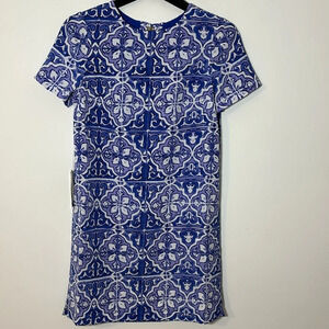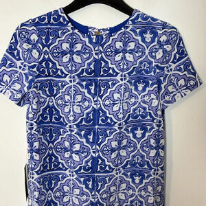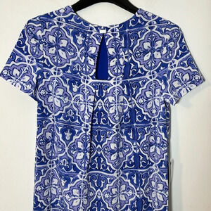 The Limited Tile Printed Short Sleeve Shirt Sheath Dress Women Size Small Blue
