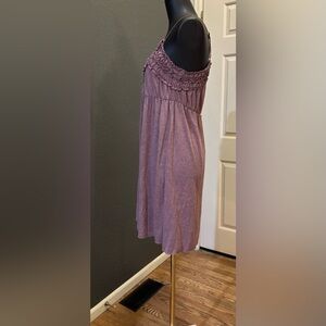ELOISE Anthropologie adjustable spaghetti strap midi/mini “baby doll” dress in a muted purple hue. Plum/eggplant fabric feels soft and cotton-like to the touch. Dress it up with layers, tights, leggings, boots or casual and comfortable for breezy, light days for a brunch or lounging around the house.