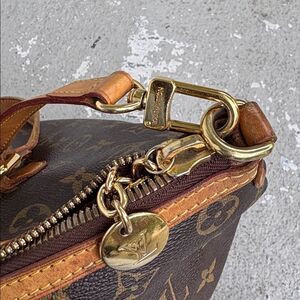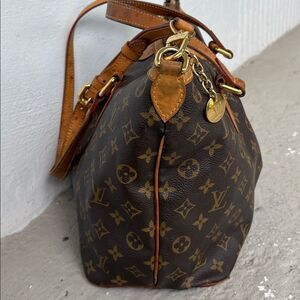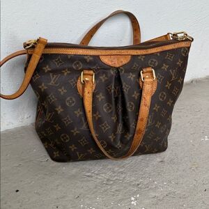 Please look at the pictures. This is a vintage tote and they no longer make this style. As you see from the pictures, it is not perfect. It is a discontinued style, measuring across the bottom is 11.5 inches across the top is 14 by approximately 9.5 x 6. The shoulder strap has been repaired so it’s a little shorter than normal. At its maximum length including the buckles is 32 inches. Inside is clean, but as I show in pictures has two black dots next to the label.