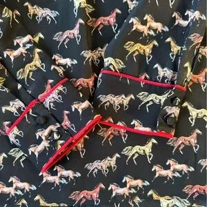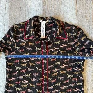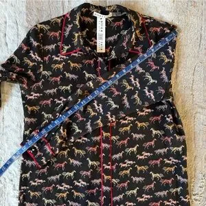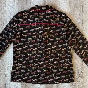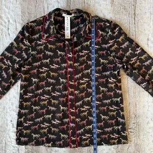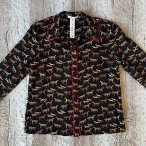NWT Alice + Olivia Horse-Print Willa Placket Top With Piping in Rodeo Black Sz.M