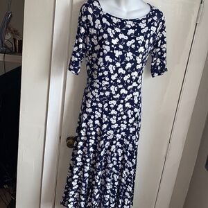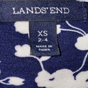 LANDS’ END Navy Blue White Floral Elbow Sleeve Midi Dress-XS