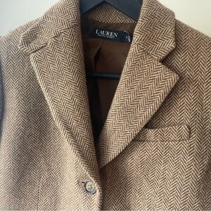 Ralph Lauren BLACK LABEL Women's Herringbone Tweed Blazer Tan/Brown Equestrian 2