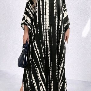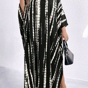 Discover elegance with this stunning black and white dress. Perfect for any occasion, it offers a chic and timeless look. Plus Size Women's Straight Cut Batwing Sleeve Loose Casual Dress Maxi Women Outfit. Bought for a work event worn once.