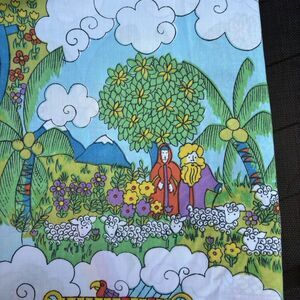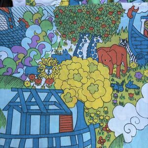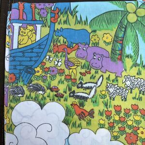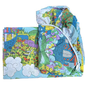 Vtg Sears Childrens Noah Ark 60s 70s Twin Bed Fitted & Flat Sheet Set Color READ