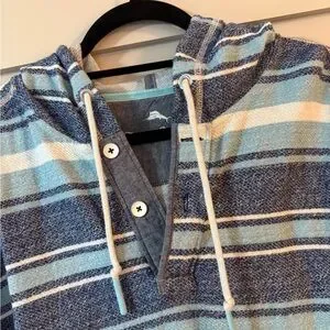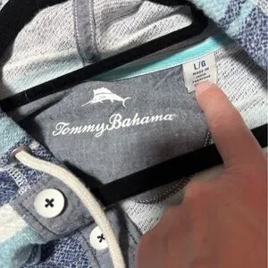 Tommy Bahama Blue and White Striped Baja Cotton Hoodie