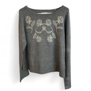 Chic charcoal sweater with intricate cream floral pattern embroidered on the front. Perfect for a stylish look. This item is brand new with tags.
