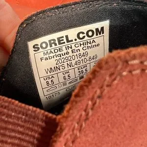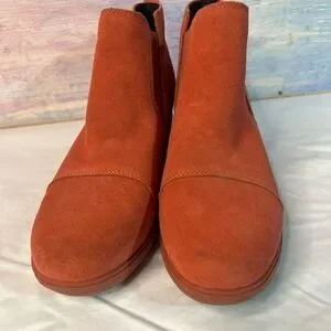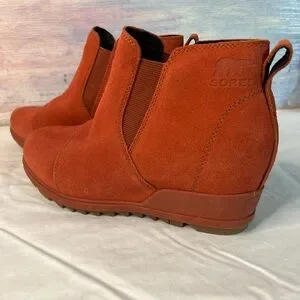 Stylish suede booties by Sorel. Rich rust color. Ideal for any outfit.