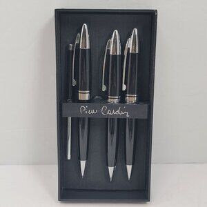 This elegant Pierre Cardin pen set includes three striking black pencil and pens with a sleek design. Ideal for professionals seeking style and functionality, these pens offer a comfortable writing experience. The set is perfect for daily use in any office environment, enhancing your writing tasks with sophistication.