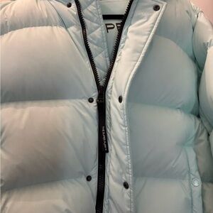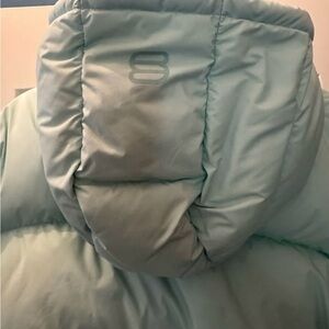 Chic and cozy puffer. Ideal for cold weather. Features a hood and sleek design.