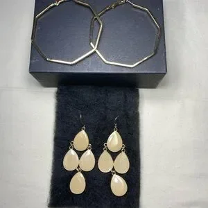 2 Pairs- Elegant Gold and Cream Earrings Set
