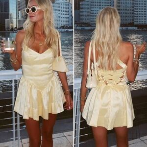 Show Me Your Mumu Abigail Pale Yellow Taffeta Lace Up Mini Dress size large