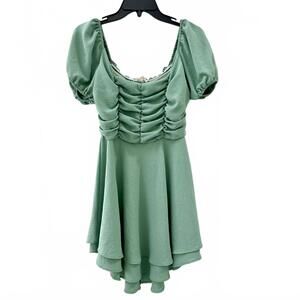 Altar’d State ‘Edwina’ Puff Sleeve Sage Green Ruffle Mini Dress- Size Small
