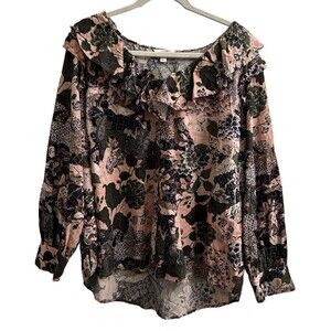 Terra & Sky Womens Blouse Ruffles Floral Top Sz 1X Peasant Boho